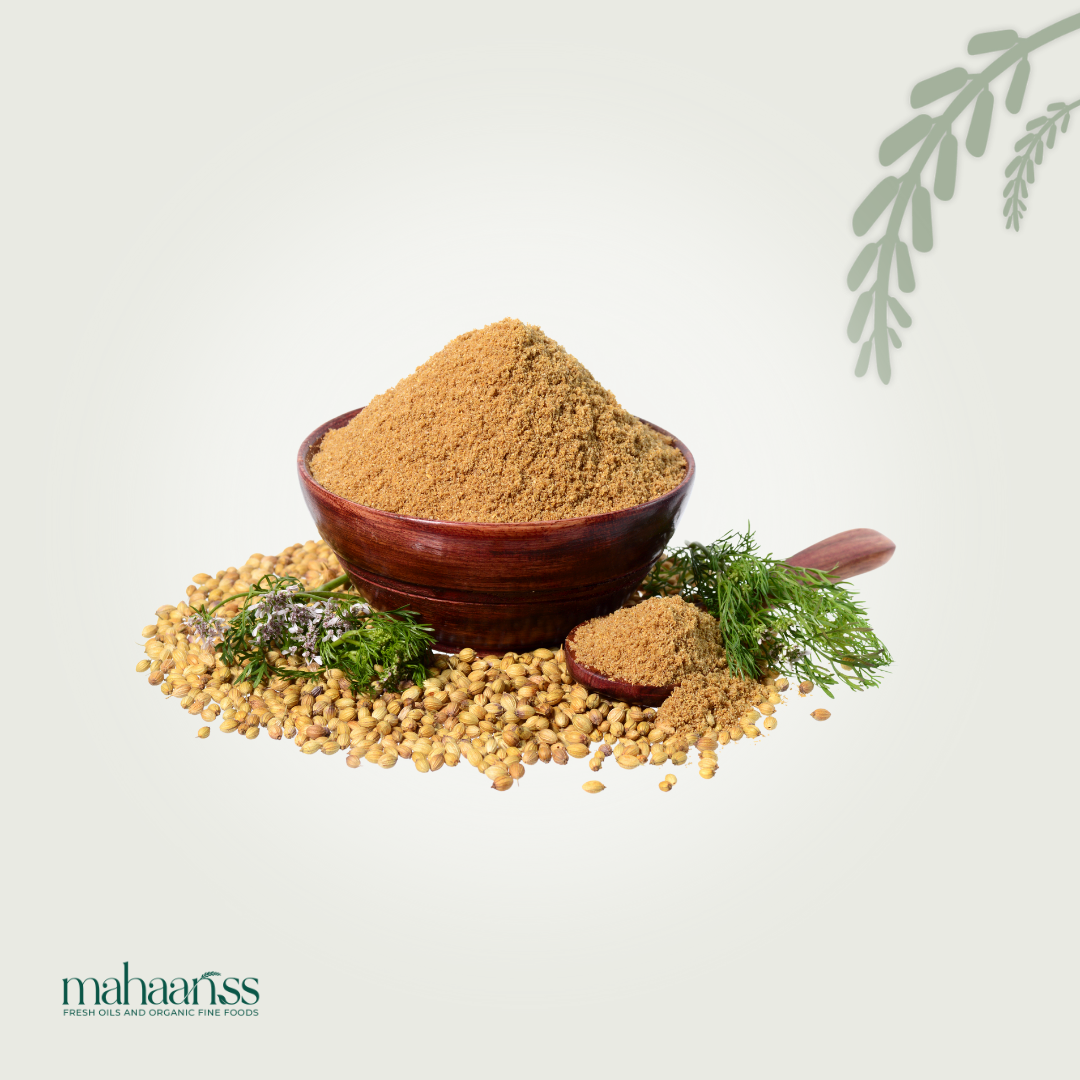 Ground coriander seeds add a warm, citrusy flavor while aiding digestion and reducing inflammation. Ideal for spice blends, curries, and marinades. Enhances both taste and wellness in meals.