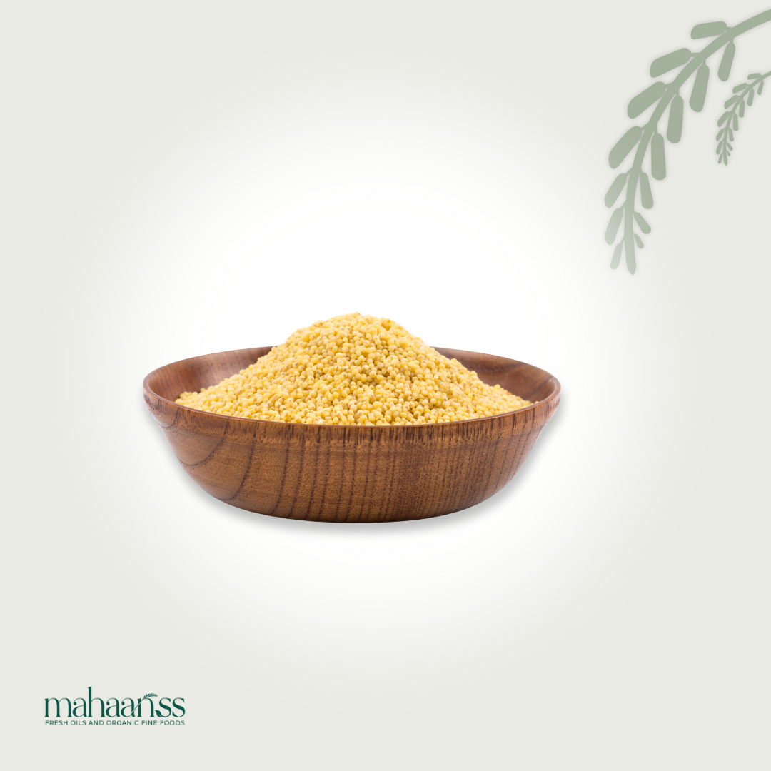 Small-grain millet polished for easy cooking supports blood sugar control with gluten-free fiber. Used as a porridge or rice substitute, it aids digestion and sustained energy. A nutritious ancient grain.