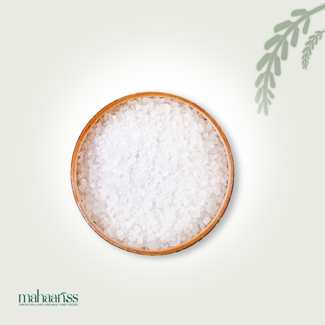 Coarse salt harvested from the Mediterranean Sea, rich in trace minerals that contribute to overall health. It is widely used for seasoning food as well as in bath and spa treatments to promote relaxation and skin wellness. The minerals in this salt help maintain electrolyte balance and support hydration.