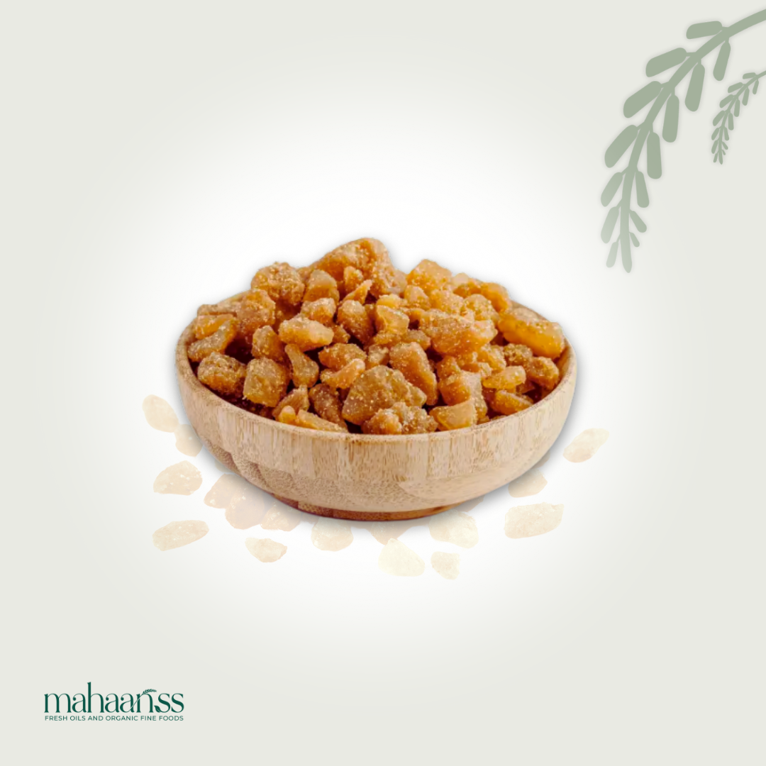 Unrefined palm sugar crystals with a caramel-like sweetness, providing a natural sweetener option that has a low glycemic index and contains beneficial minerals like potassium and magnesium. Ideal for sweetening beverages, desserts, cooking, and baking.
